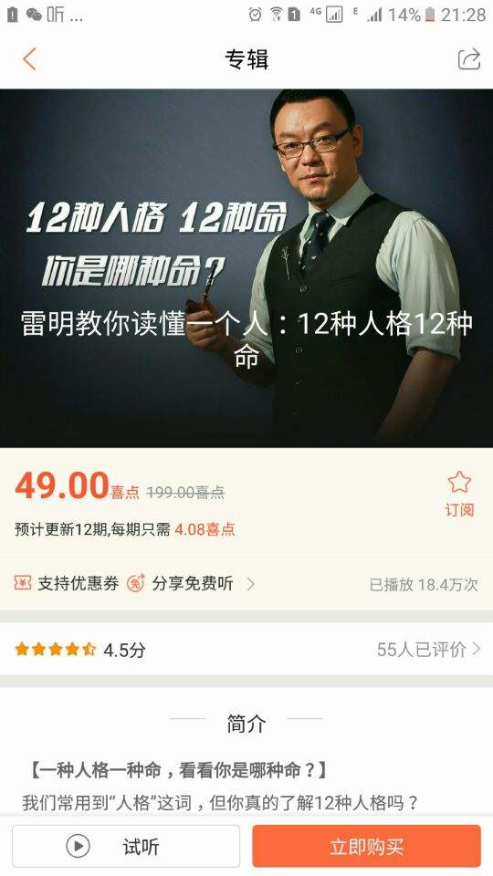 这是一个音频节目,我今年的目标读150本书,也包含音频内容,因为一来很多优质内容并没有形成书稿或不便用书来传播,二来听书能把更多的碎片时间利用上。但听书只能是读书的补充,想要知识的提升,必须“读”书,因为在读的时候,头脑中分泌大量的α波,但看听媒体内容时分泌的是β波。