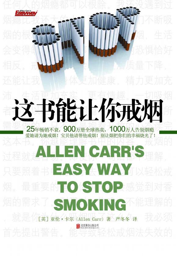 这本书如果你用倒叙的方法看,只要5分钟就能看完,其实戒烟的方法就一句话“立刻不抽烟”。本书共44章节,戒烟方法深藏在第32章,不仔细找都翻不到,就是这一句的干货,行了,我帮大家省了30元书本费。我觉得这个作者有卖弄和注水嫌疑,七拼八凑的写了一大堆,每篇都要插入戒烟成功人士发来的感谢或感悟,看着有点烦,书还挺贵。不过看在他确实看清问题的关键,帮人类前进了一大步的份上,忍了!